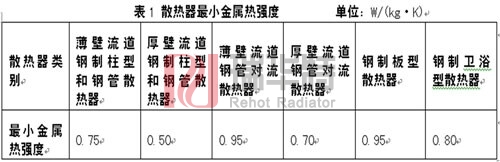 GB29039—2012《鋼制采暖散熱器》規定,散熱器的最小金屬熱強度應達到表1的要求。